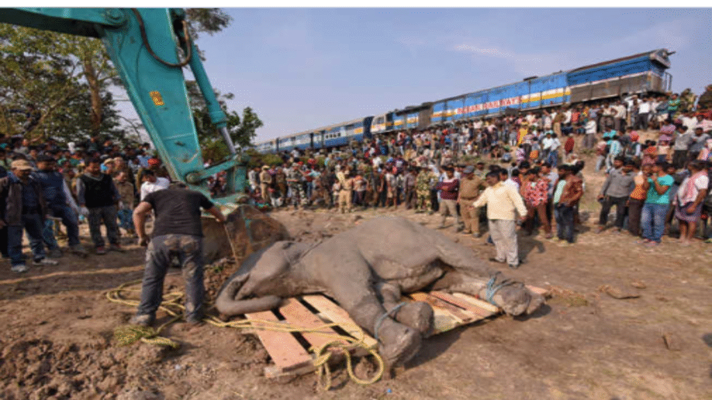 असम के लुमडिंग डिवीजन में शनिवार सुबह एक दर्दनाक हादसा हुआ, जहां सैरांग-नई दिल्ली राजधानी एक्सप्रेस जंगली हाथियों के झुंड से टकरा गई। टक्कर इतनी जोरदार थी कि ट्रेन का इंजन और पांच डिब्बे पटरी से उतर गए। वन अधिकारी ने बताया कि शनिवार तड़के असम के होजाई जिले में सैरांग-नई दिल्ली राजधानी एक्सप्रेस की चपेट में आने से 8 हाथियों की मौत हो गई।