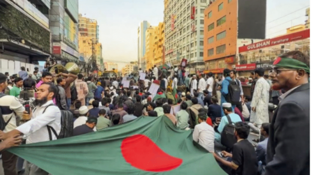 ढाका। बांग्लादेश एक बार फिर गंभीर राजनीतिक अस्थिरता और हिंसा की चपेट में आ गया है। जुलाई 2024 के छात्र आंदोलन के प्रमुख नेता और इंकिलाब मंच के प्रवक्ता शरीफ उस्मान हादी की सिंगापुर में मौत की खबर फैलते ही देशभर में प्रदर्शन भड़क उठे। इस दौरान ढाका में प्रदर्शनकारियों ने देश के दो प्रमुख मीडिया हाउस – प्रोथोम आलो और द डेली स्टार – के कार्यालयों पर हमला कर उन्हें आग के हवाले कर दिया।