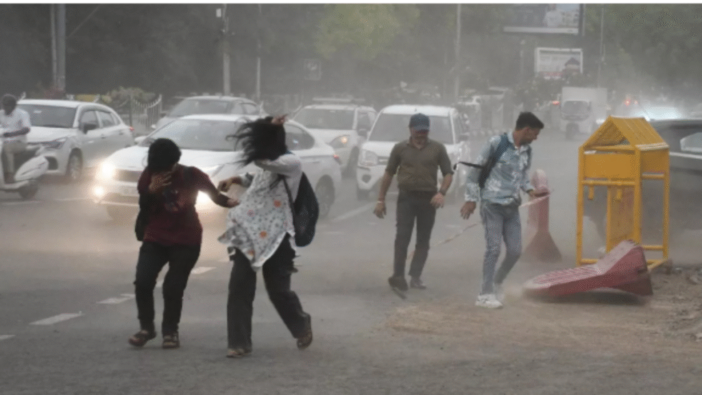 दिल्ली-एनसीआर में मौसम ने अचानक करवट ली है। तेज धूप के बाद आसमान में काले बादल छा गए और कई इलाकों में बारिश शुरू हो गई जिससे लोगों को गर्मी से राहत मिली है। दिल्ली-एनसीआर के वेदर में आए इस बदलाव से तापमान में गिरावट दर्ज की गई है। कई इलाकों में ओले भी गिरे हैं। नोएडा और आसपास के इलाकों में तेज आंधी चल रही है।