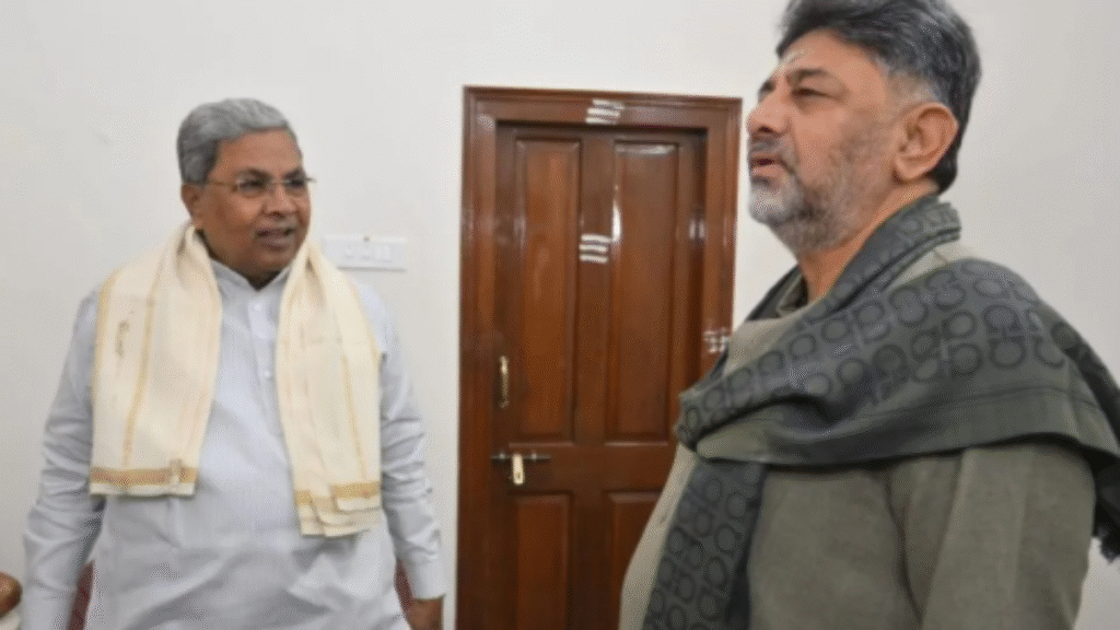 कर्नाटक की राजनीति एक बार फिर चर्चा में है, और इस बार मुद्दा है—मुख्यमंत्री पद को लेकर जारी खींचतान। मुख्यमंत्री सिद्दरमैया और उपमुख्यमंत्री डीके शिवकुमार के बीच लंबे समय से चल रहे नेतृत्व विवाद ने कांग्रेस नेतृत्व की चिंता बढ़ा दी है। ताज़ा घटनाक्रम में सोमवार सुबह डीके शिवकुमार सिद्दरमैया के घर ब्रेकफास्ट मीटिंग के लिए पहुंचे। इसे राजनीतिक हलकों में सुलह के संकेत या तनाव कम करने का प्रयास माना जा रहा है।