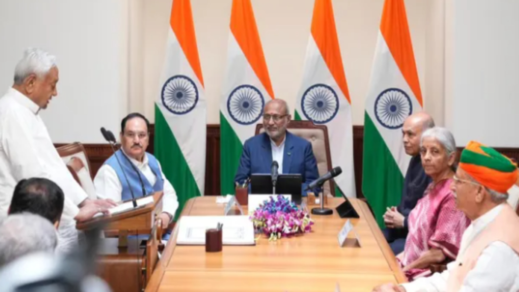 नई दिल्ली: बिहार के मुख्यमंत्री नीतीश कुमार ने शुक्रवार को दिल्ली में राज्यसभा सदस्य के रूप में शपथ ली। उपराष्ट्रपति और राज्यसभा सभापति सी.पी. राधाकृष्णन ने उन्हें पद की शपथ दिलाई। शपथ ग्रहण राज्यसभा सभापति के कक्ष में हुआ।नीतीश कुमार देश के पहले ऐसे नेता बन गए हैं जिन्होंने मुख्यमंत्री पद पर रहते हुए राज्यसभा सदस्यता ग्रहण की। इससे पहले कई नेता मुख्यमंत्री पद से इस्तीफा देकर राज्यसभा पहुंचे थे।