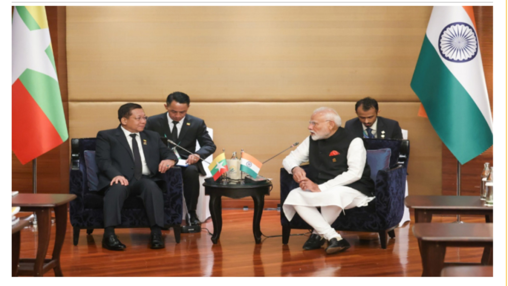 बैंकॉक। आज बैंकॉक में आयोजित BIMSTEC शिखर सम्मेलन के दौरान भारत के प्रधानमंत्री नरेंद्र मोदी और म्यांमार के प्रधानमंत्री एवं राज्य प्रशासन परिषद के अध्यक्ष वरिष्ठ जनरल मिन आंग ह्लाइंग के बीच महत्वपूर्ण मुलाकात हुई।