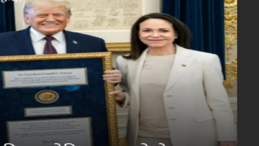 वेनेजुएला की प्रमुख विपक्षी नेता और 2025 की नोबेल शांति पुरस्कार विजेता मारिया कोरिना मचाडो ने गुरुवार 15 जनवरी 2026 को व्हाइट हाउस में राष्ट्रपति डोनाल्ड ट्रंप के साथ एक निजी बैठक के दौरान अपना नोबेल शांति पुरस्कार का स्वर्ण पदक उन्हें सौंप दिया। मचाडो ने इस जेस्चर को अमेरिकी राष्ट्रपति की वेनेजुएला की स्वतंत्रता के प्रति “अद्वितीय प्रतिबद्धता” के सम्मान में बताया।